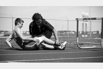 - Light stretching of the quadriceps and hamstrings (muscles on the front and back of thigh).
