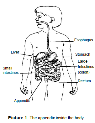 Your child has had an appendectomy (ap pen DECK toe mee), which is the surgical removal of the appendix. The appendix is a small, narrow sac at the beginning of the large intestine (Picture 1). The appendix has no known function. Parts of your child’s appendix were gangrenous (dead) or the appendix was blocked, causing it to swell and rupture (burst).