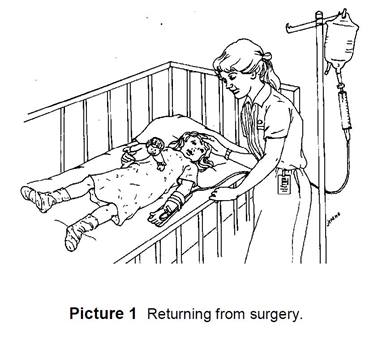 is returned to his room. - Your child may have an IV (intravenous line) so he can receive the needed fluids and medicines (Picture 1).