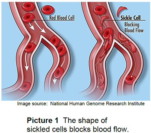 Pain is a common problem for children with sickle cell disease (SCD). Sickled cells have a hard time moving through small blood vessels. They can pile up and clog the vessels, keeping oxygen from getting to certain parts of the body (Picture 1). This causes pain.