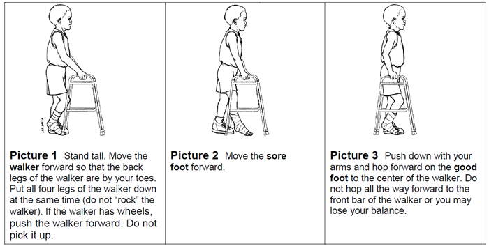 Walkers can be used to keep weight off a leg or foot while it is healing. They are often used instead of crutches for younger children or those who have trouble keeping their balance.
