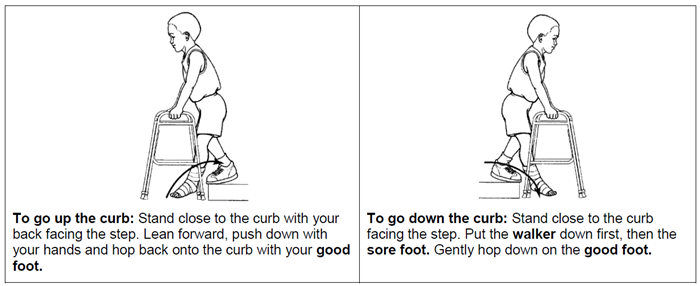 arm is relaxed at the child’s side. - Do not use a walker on the stairs. (See below for getting up and down stairs.)