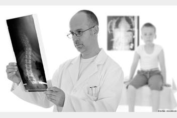 - If the exam shows scoliosis is possible, x-rays (one from the front and one from the side) will be taken to measure any curvature of the spine.